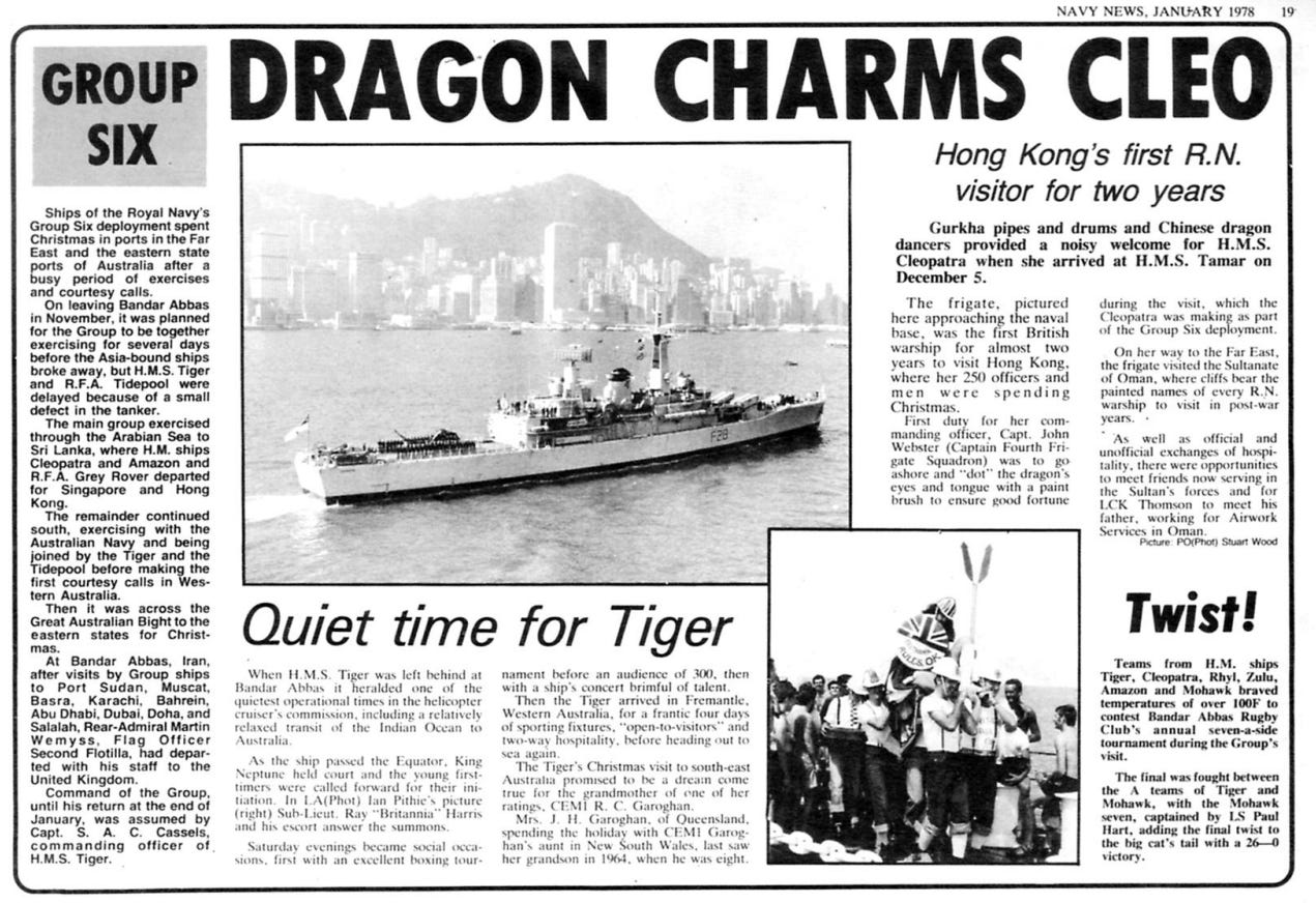 In November 1977, a Royal Navy task group crossed the Gulf from Dubai to Bandar Abbas to take part in a multinational naval exercise. I was serving aboard the frigate HMS Mohawk, part of a the Group 6 deployment led by the cruiser HMS Tiger.